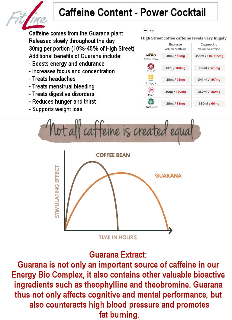 The Drinks are not medicinal, they are purely nutritional, and have nothing in them that your body does not need, and the sugar inside is all natural fructose from fruit, and is a fraction of the sugar contained in one apple, all caffeine in the drinks comes from the guava fruit, and is totally naturally occurring, it is a fraction of the caffeine in a standard coffee-shop coffee. The Guava Caffeine is also absorbed differently from coffee caffeine, and has much more beneficial to the body also.Â